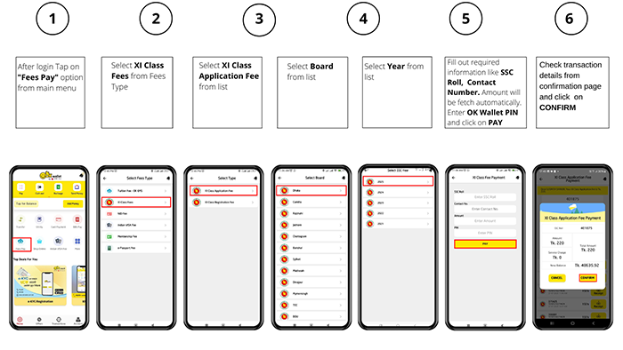 Class XI Admission and Registration Fee in a fast and secure way along with their own OK Wallet App and also from OK Wallet registered Agent