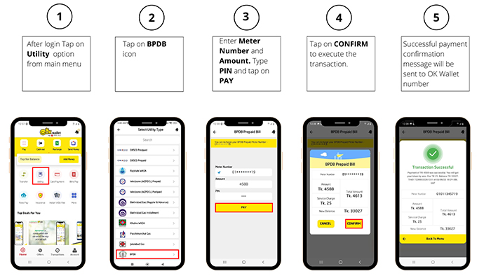 to conveniently and securely recharge their BPDB prepaid bills using the OK Wallet mobile app. Offering