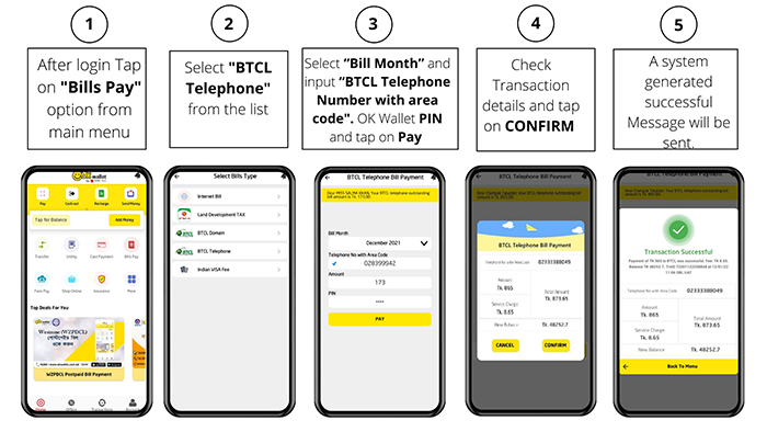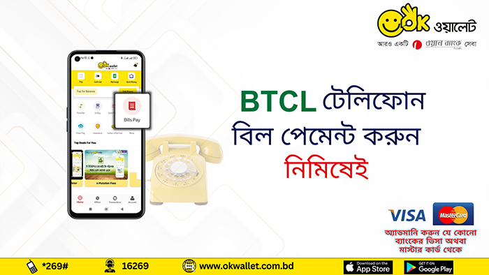 Now customers can pay their BTCL Telephone Bill in fast and secure way through their own OK Wallet