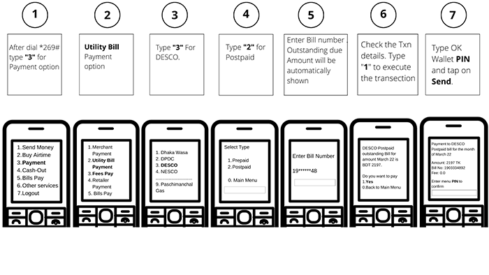 Procedure to pay DESCO Postpaid bill payment through OK Wallet USSD: