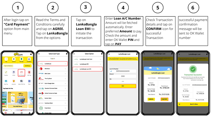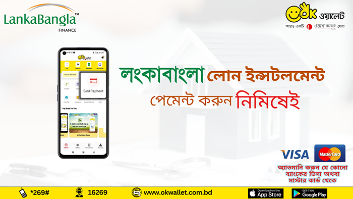 OK Wallet has introduced LankaBangla Loan EMI Payment facility for customers’ convenience. Now, OK Wallet customers can pay their LankaBangla loan EMI Payment through their own OK Wallet App and also from OK Wallet registered Agent points. This service will empower customers to pay their loan EMI from anywhere of the country at anytime.