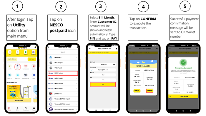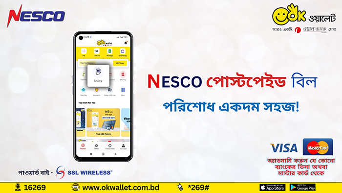 OK Wallet has launched NESCO Postpaid bill payment facility for its valued customer. This service will enable customers to pay their NESCO Postpaid bill through personal OK Wallet Account, Agent points and also from any nearby branches of OBL branches through OK Wallet. This payment service will