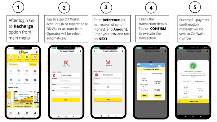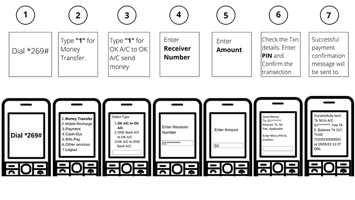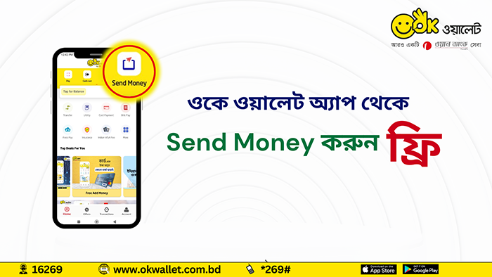 No service charge is applicable for send money from OK Wallet App. Only Tk. 5 Service charge is applicable for send money from OK Wallet USSD.