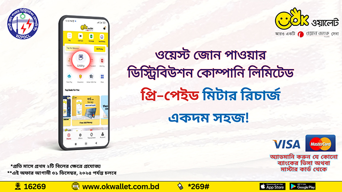 OK Wallet has brought West Zone (WZPDCL) Prepaid Meter Recharge service for Customers. From